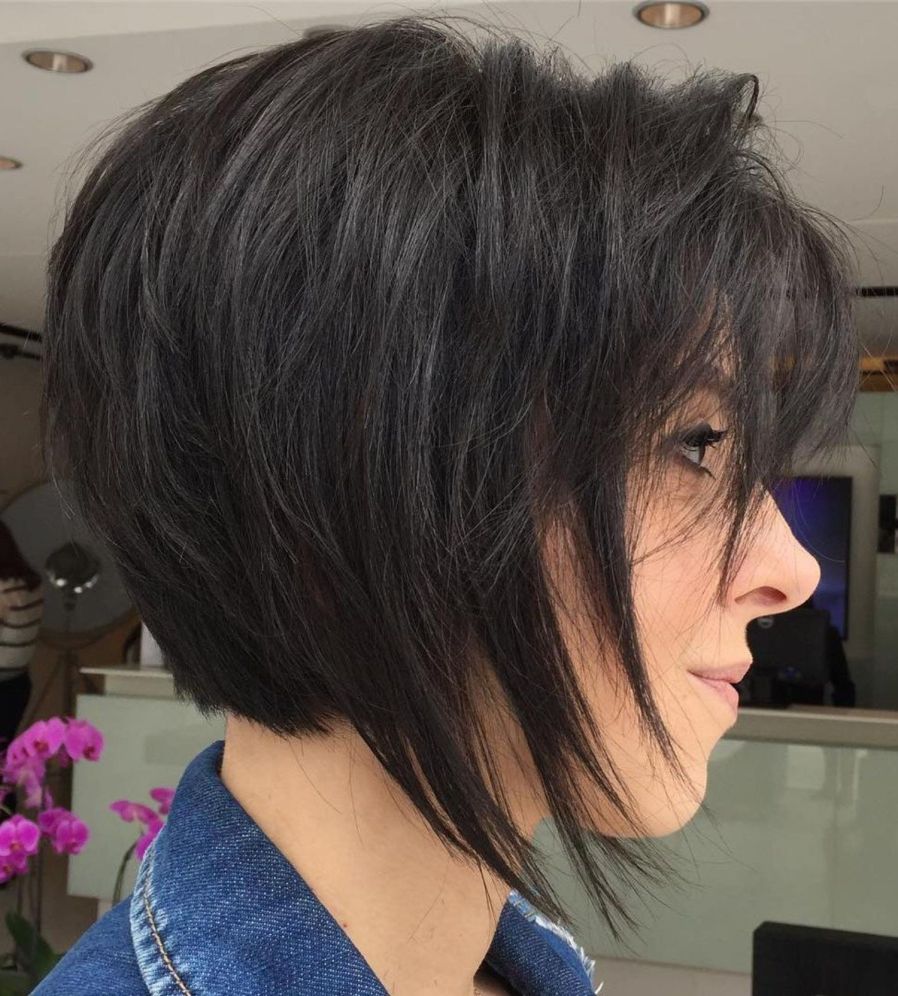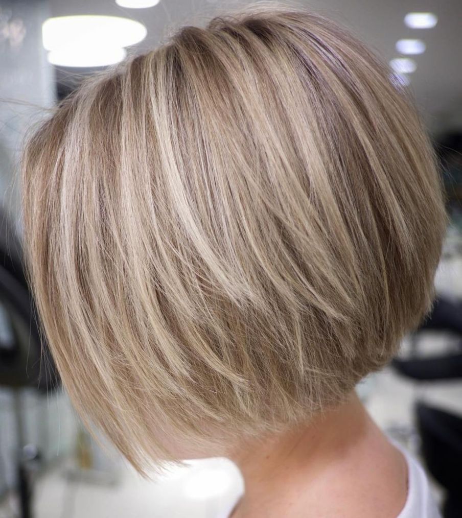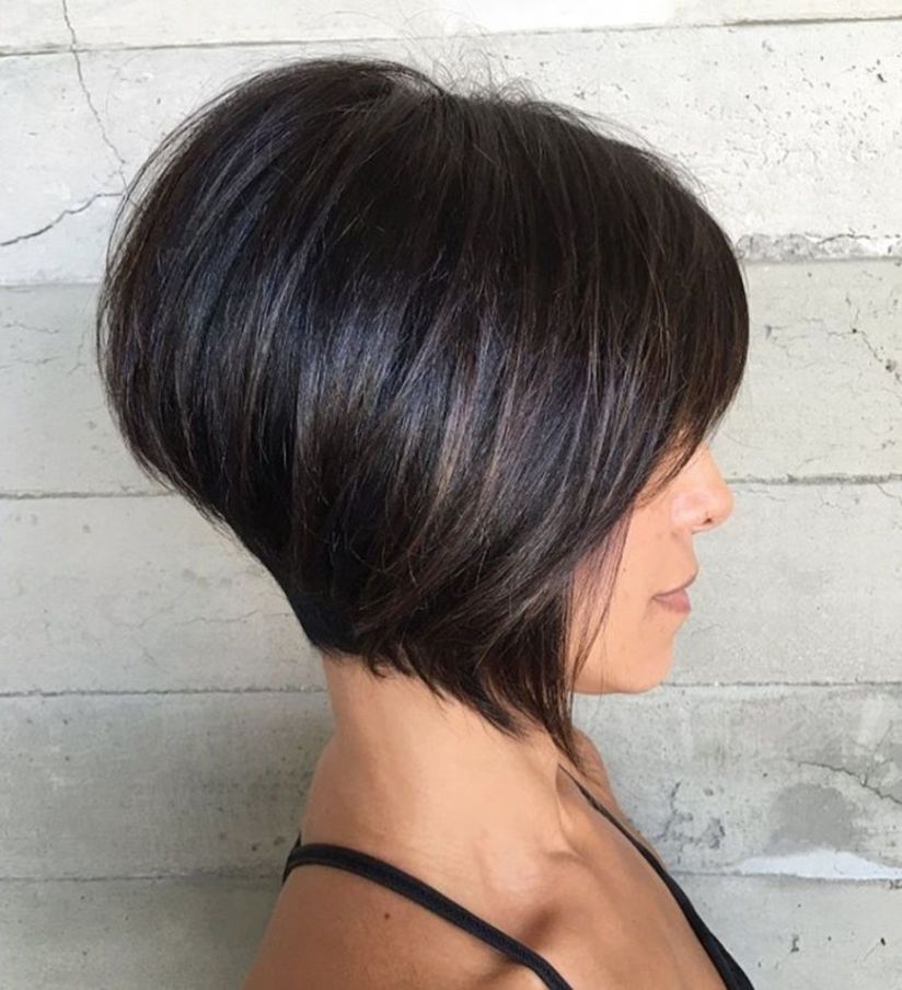 ¿Tienes el cabello delgado y fino? ¡Este bob corto invertido con capas en ángulo es un gran corte para ti! Acentúa el volumen y la plenitud por las capas superiores más largas. También elevará la altura de la corona de tu cabello de una manera hermosa.