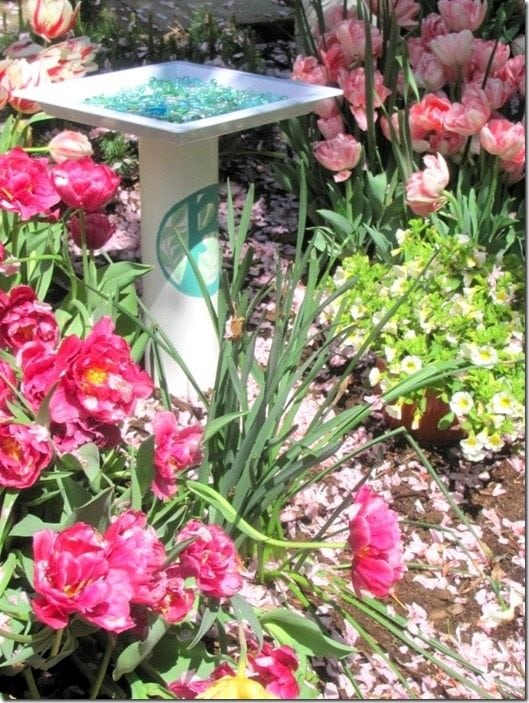 Lo único que tienes que hacer es pegar un pedazo de tubería de PVC en un plato y llenarlo con piedras que puedes conseguir en tiendas de descuento, para crear esta adorable bañera para aves.