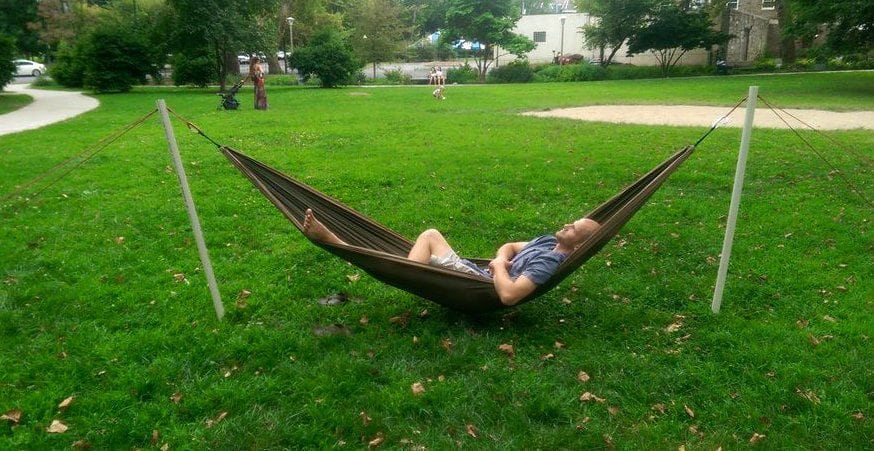 No hay nada mejor que una siesta en una hamaca… nada. Ni siquiera necesitas árboles para hacer esto. Obtén las instrucciones