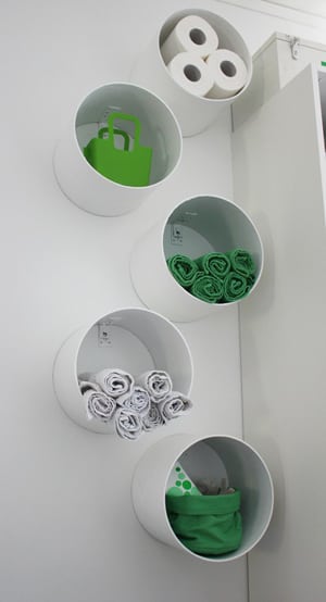 También puedes usar tubos de PVC para crear estantes flotantes. Usa una tubería grande, córtala en rodajas y usa soportes para fijarlas a la pared.