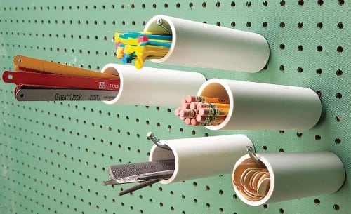 ¿Necesita un poco de espacio para guardar cosas en un tablero? Usa un tubo de PVC y colócalo sobre los ganchos del tablero. Obtén detalles acerca de este proyecto