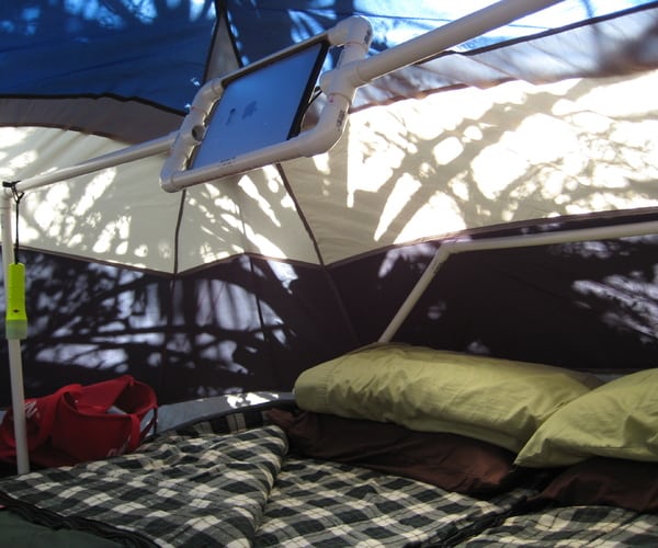 Solo porque estás acampando no significa que no puedas ver una buena película. Simplemente crea un soporte para iPad usando tubos PVC. Aprende cómo hacer uno
