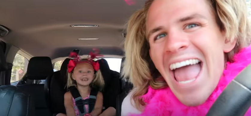 Everleigh también está vestida de rosa mientras ella y su papá hacen los mismos movimientos de baile dentro del auto.