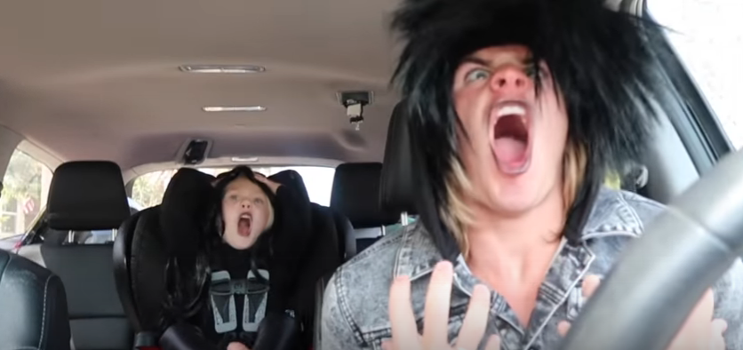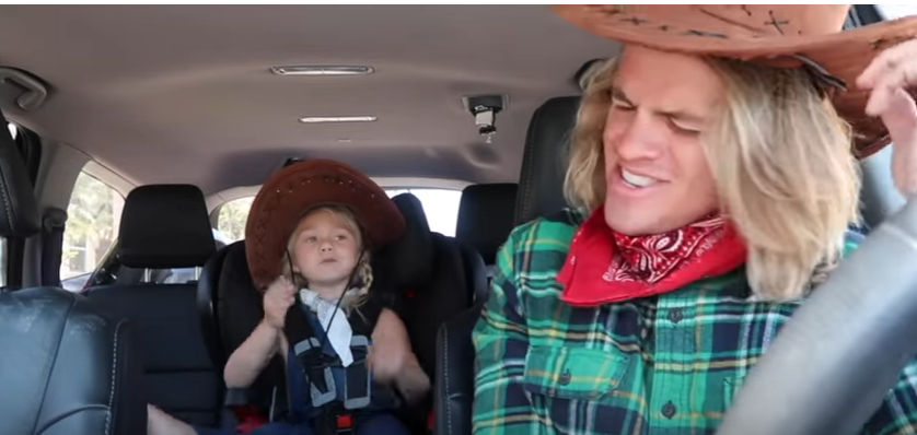 “Oye papá, ¿podemos escuchar la radio?”, Le pregunta Everleigh a Cole desde el asiento trasero.